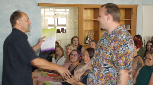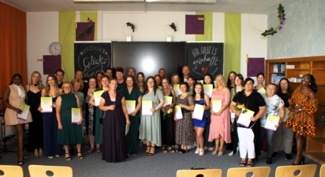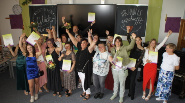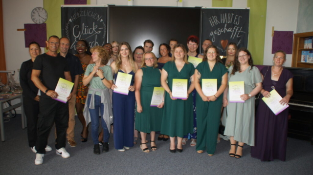 Hier einige Fotos zur Urkundenverleihung durch den Schulleiter Siegmund Klug. Leider sind dem Fotografen ein paar wenige Absolvent*innen durch die Lappen (…Linse) gegangen.