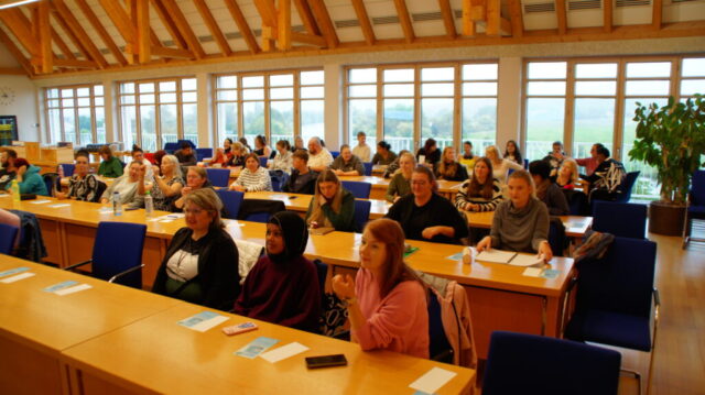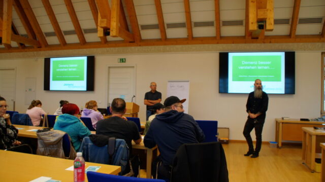 Unsere Berufsfachschulen für Pflegeberufe gehören schon zu den regelmäßigen Besuchern des von der Gesundheitsregion Haßberge organisierten Demenztages im Rahmen der bayerischen Demenzwoche. Sowohl der 3-stündige Vortrag, als auch der anschließende Demenzpfad wecken das Interesse der Auszubildenden. Die Beteiligung der Pflegefachhelfer*innen und Pflegefachfrauen und Pflegefachmännern war intensiv. Begleitet wurden die 45 Auszubildenden von den Lehrkärften Clarissa Gehring, Michael Weisel und Matthias Beck.