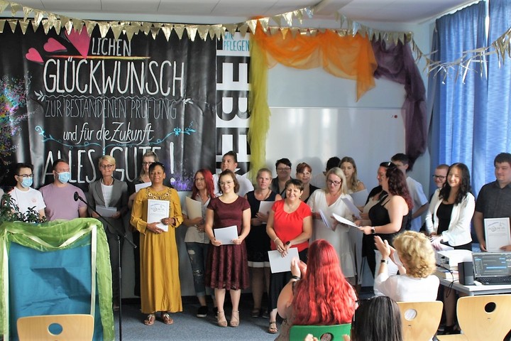 27 Pflegefachkräfte und 22 Pflegefachhelfer wurden feierlich verabschiedet Endlich! Nach zwei Jahren Corona-Zwangspause konnte wieder eine dem anlass entsprechende Abschlussfeier begangen werden. Die Absolventionnen und Absolventen saßen frohgemut und erleichtert,