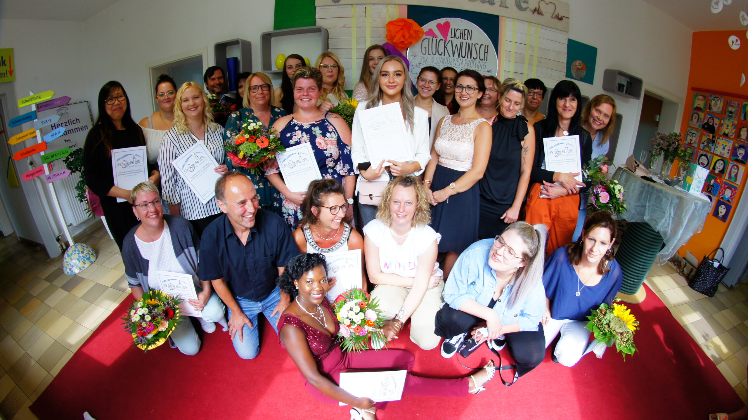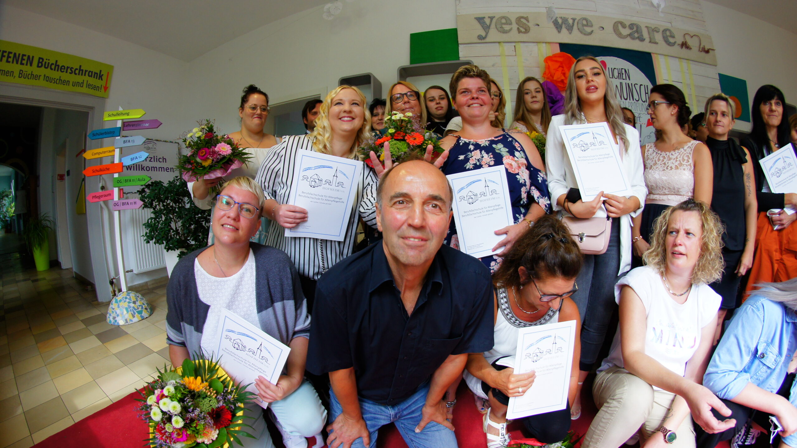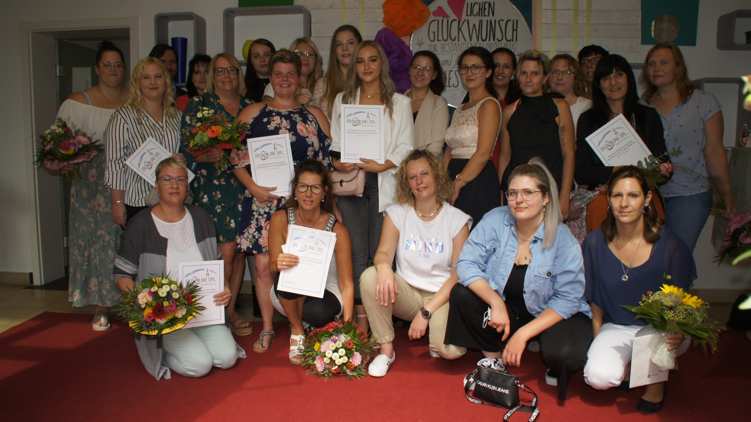 In getrennten Feiern erhielten die Auszubildenden der beiden Abschiedsklassen ihre Zeugnisse. Nach eine kurzen Ansprache durch Schulleiter Siegmund Klug, musikalisch untermalt von Michael Weisel, Übergabe der Zeugnisse und einer Anerkennung für die Besten wurde im Hof ein kleiner Corona konformer Umtrunk  veranstaltet. 25 Pflegefachkräfte und 11 generalistische Pflegefachhelfer starteten stolz in einen neuen Lebensabschnitt.
