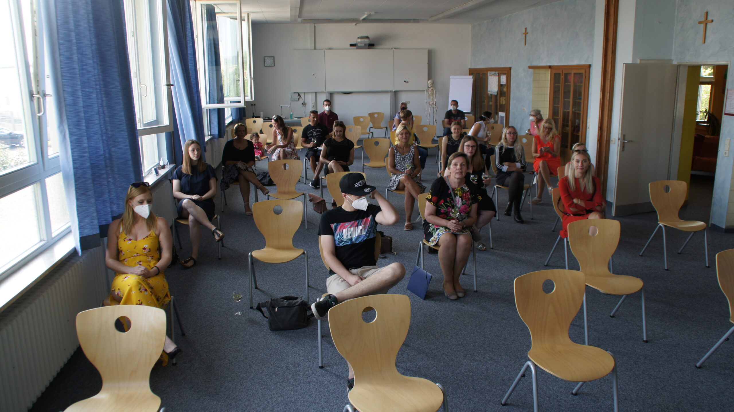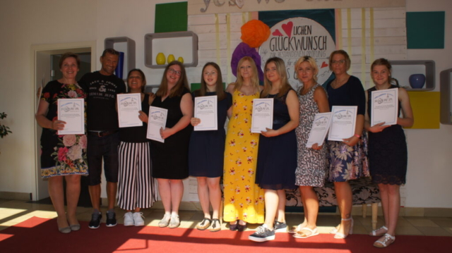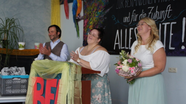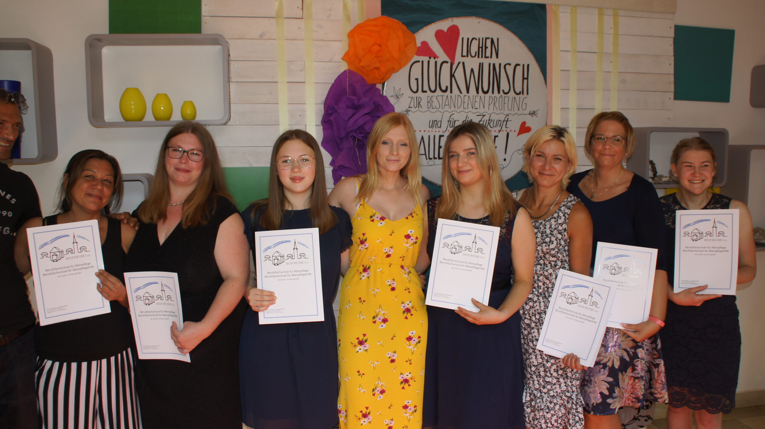In getrennten Feiern erhielten die Auszubildenden der beiden Abschiedsklassen ihre Zeugnisse. Nach eine kurzen Ansprache durch Schulleiter Siegmund Klug, musikalisch untermalt von Michael Weisel, Übergabe der Zeugnisse und einer Anerkennung für die Besten wurde im Hof ein kleiner Corona konformer Umtrunk  veranstaltet. 25 Pflegefachkräfte und 11 generalistische Pflegefachhelfer starteten stolz in einen neuen Lebensabschnitt.