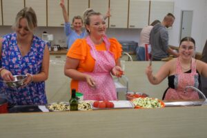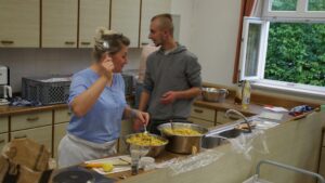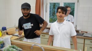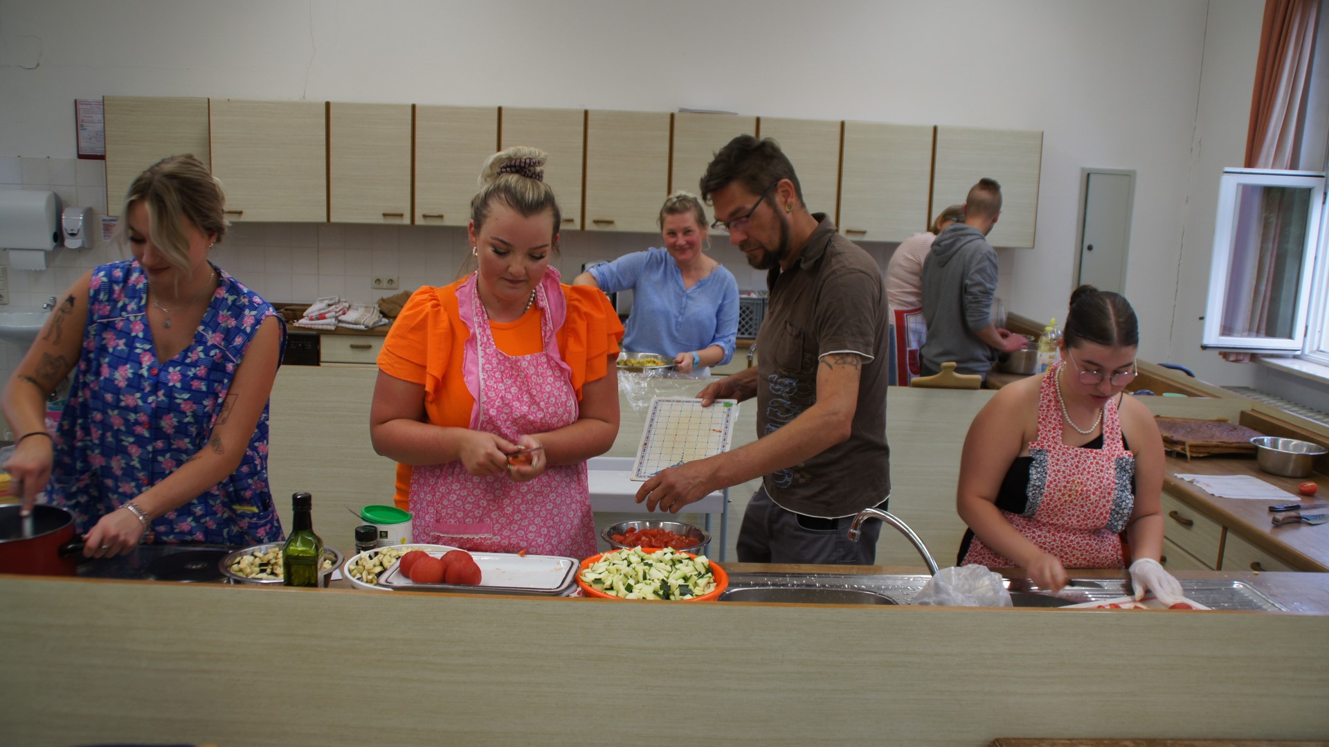 Eine schöne Tradition hat sich über die Jahre etabliert. Die 12. Klasse übernimmt, zusammen mit der Lehrkraft Karin Albrecht, für die Abschlussfeier die wichtigen Hintergrundarbeiten – auf Neudeutsch „Catering“. Mit viel Engagement und einer Menge Spaß gingen alle ans Werk. es wurde geputzt, geschnippelt, gerührt, gebacken, geschmückt, gestellt, … und es hat alles hervorragend geklappt. Viele Dank dafür!