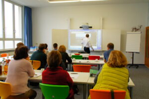 Zwei komplett ausgestattete Demonstrationsräume für den praktischen Pflegeunterricht als auch 5 Computerarbeitsplätze mit Internetzugang und Drucker sind selbstverständlich. Außerdem gibt es einen Klassensatz Chromebooks für die Nutzung des Internets, von Datenbanken.